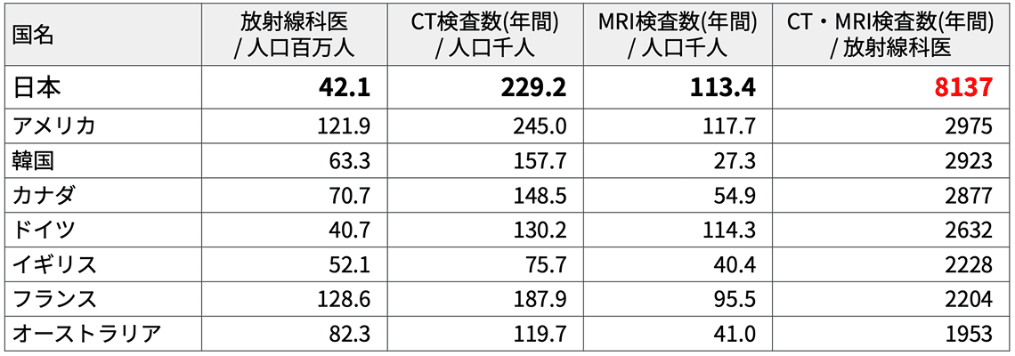日本における放射線科医の負担は世界と比較しても大きい